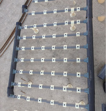 裝配好后的單孔膜曝氣器安裝于濾磚和卵石層之上,膜片工作時(shí)根本不用擔(dān)心濾料的堆壓而影響其自由擴(kuò)張,可安全的給附著于濾料上的微生物提供氧氣,其運(yùn)行方式既可連續(xù)運(yùn)行也可間歇運(yùn)行。