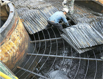 由于斜管填料比重為0.92略小于水,斜管填料在池內(nèi)組裝到位后需要在填料上方自左向右方向拉上 14mm的圓鋼進行加固(每個單元填料上部要求有兩根圓鋼通過),圓鋼兩端在沉淀池池壁上可靠固定,安裝圓鋼后可以很好地防止斜管填料在初期使用時有可能發(fā)生的松動上浮現(xiàn)象,圓鋼采用環(huán)氧煤瀝青防腐處理。