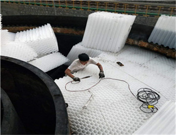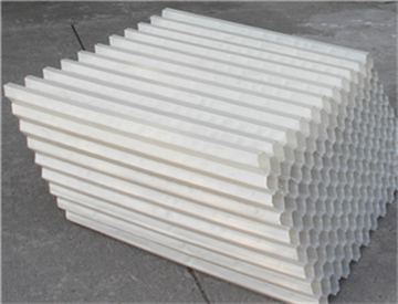 1、打開斜管填料包裝,將片斜管填料平放于地面,取第二片斜管填料置于片填料之上,檢查斜管填料的切口,必須保證60°角、并呈六角蜂窩狀,檢查無誤后開始燙接粘接點;